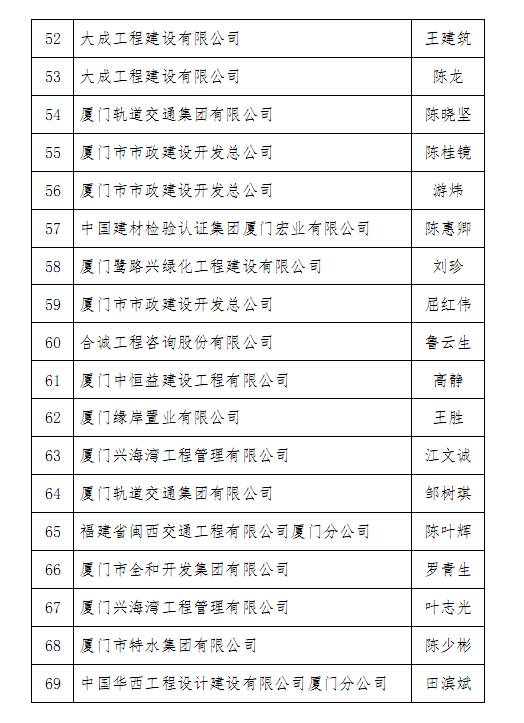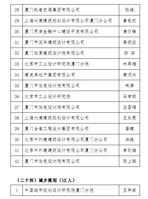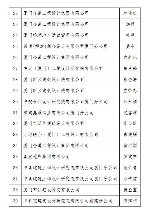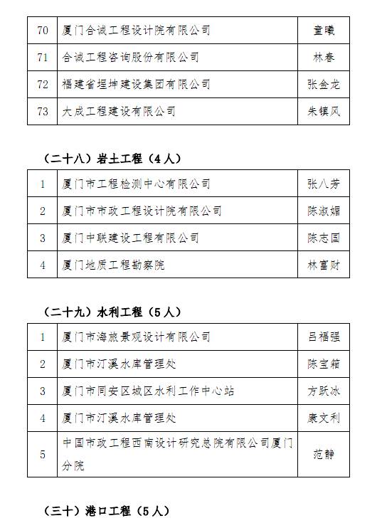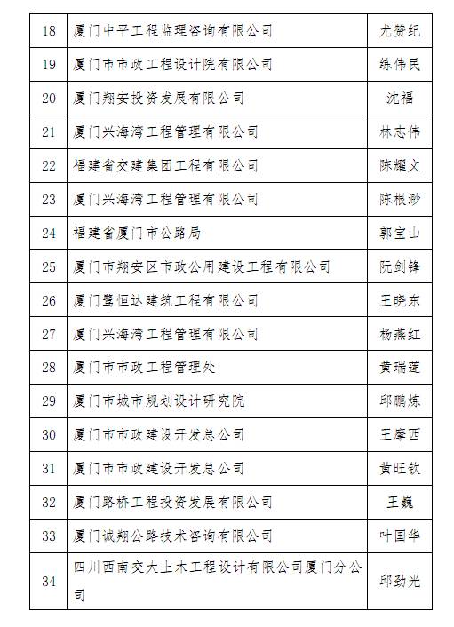 市工程经济系列职称改革领导小组办公室:2018年度厦门市工程系列高级专业技术职务任职资格评审通过人员名单公示