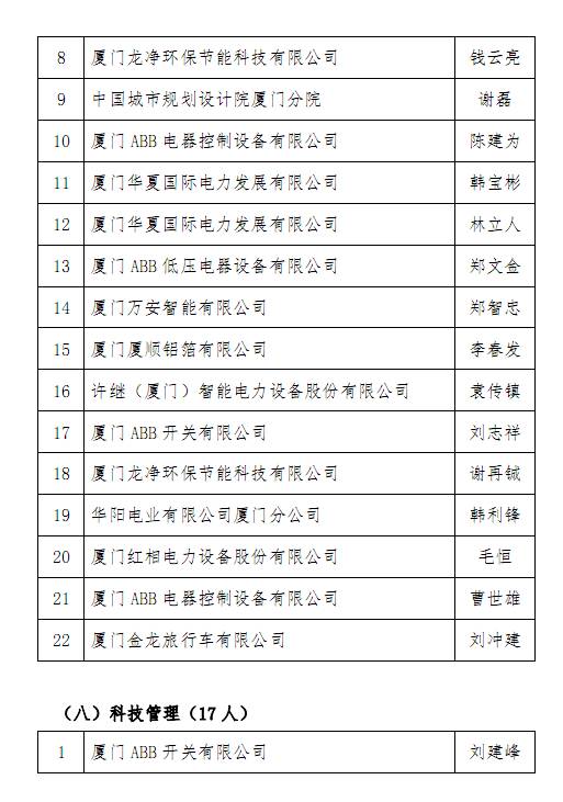 市经信局:2017年度厦门市工程系列高级专业技术职务任职资格评审通过人员名单公示