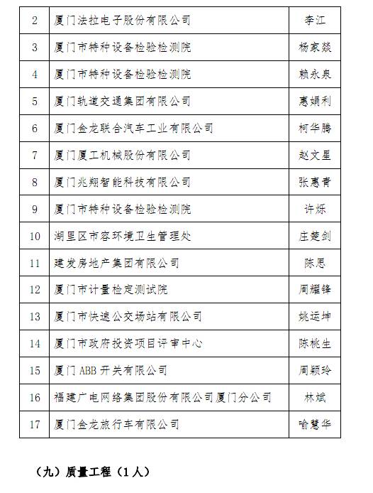 市工信局:2019年度厦门市工程系列中级专业技术职务任职资格评审(综合类)通过人员名单公示